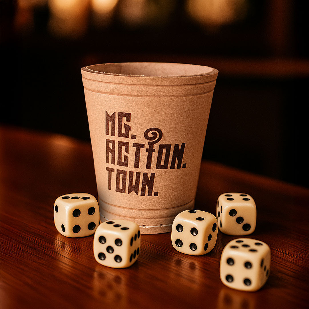 🎲 Würfelbecher MG.ACTION.TOWN – Echtleder. Echt Statement.